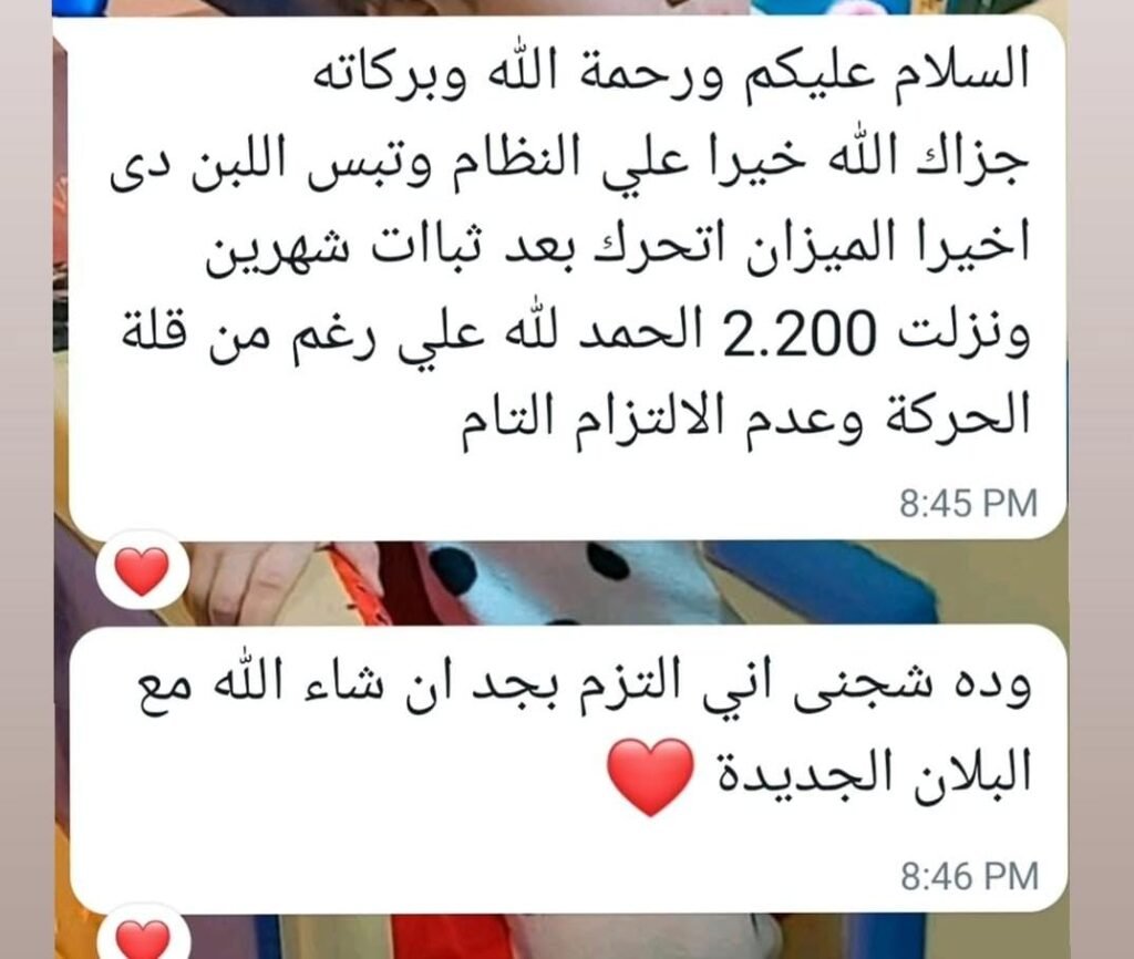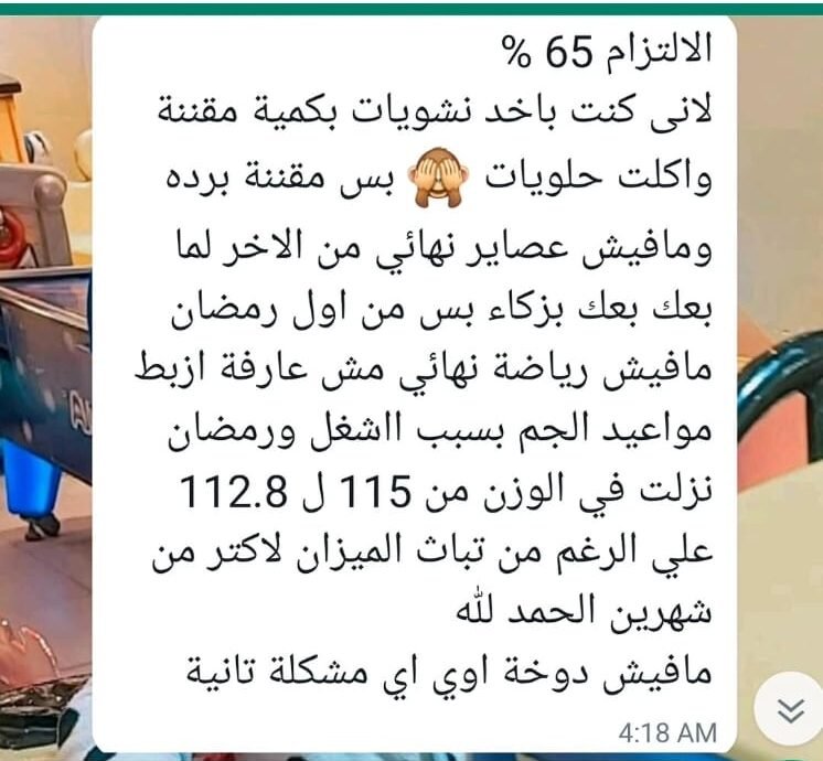 بنكون معاك خطوة بخطوة عالواتساب عشان نساعدك تلتزم و بنحللك اي صعوبات بتواجهك و كل اللي عليك الالتزام بالخطة و بتسيب النتايج علينا لحد ما توصل لهدفك باذن الله